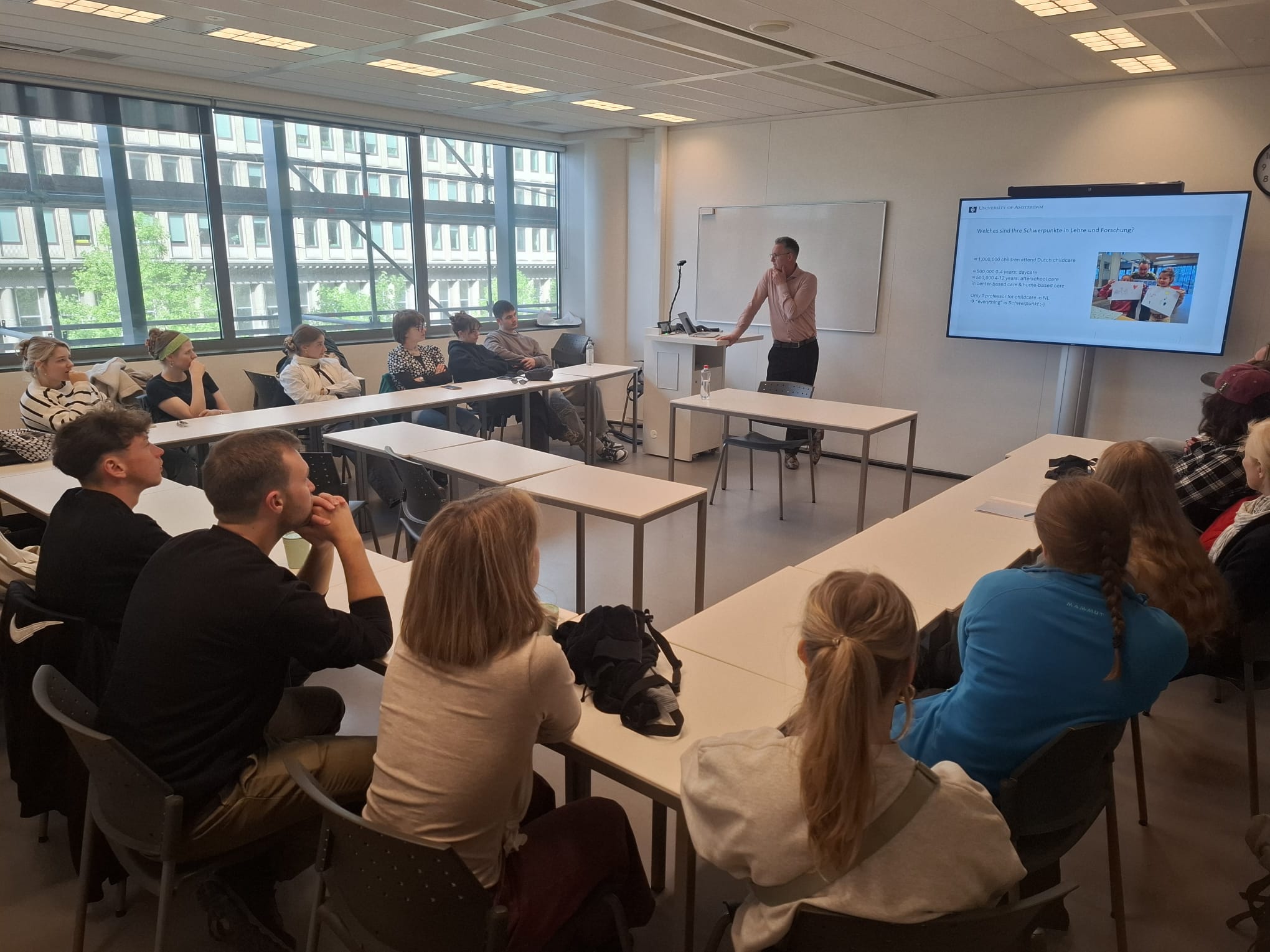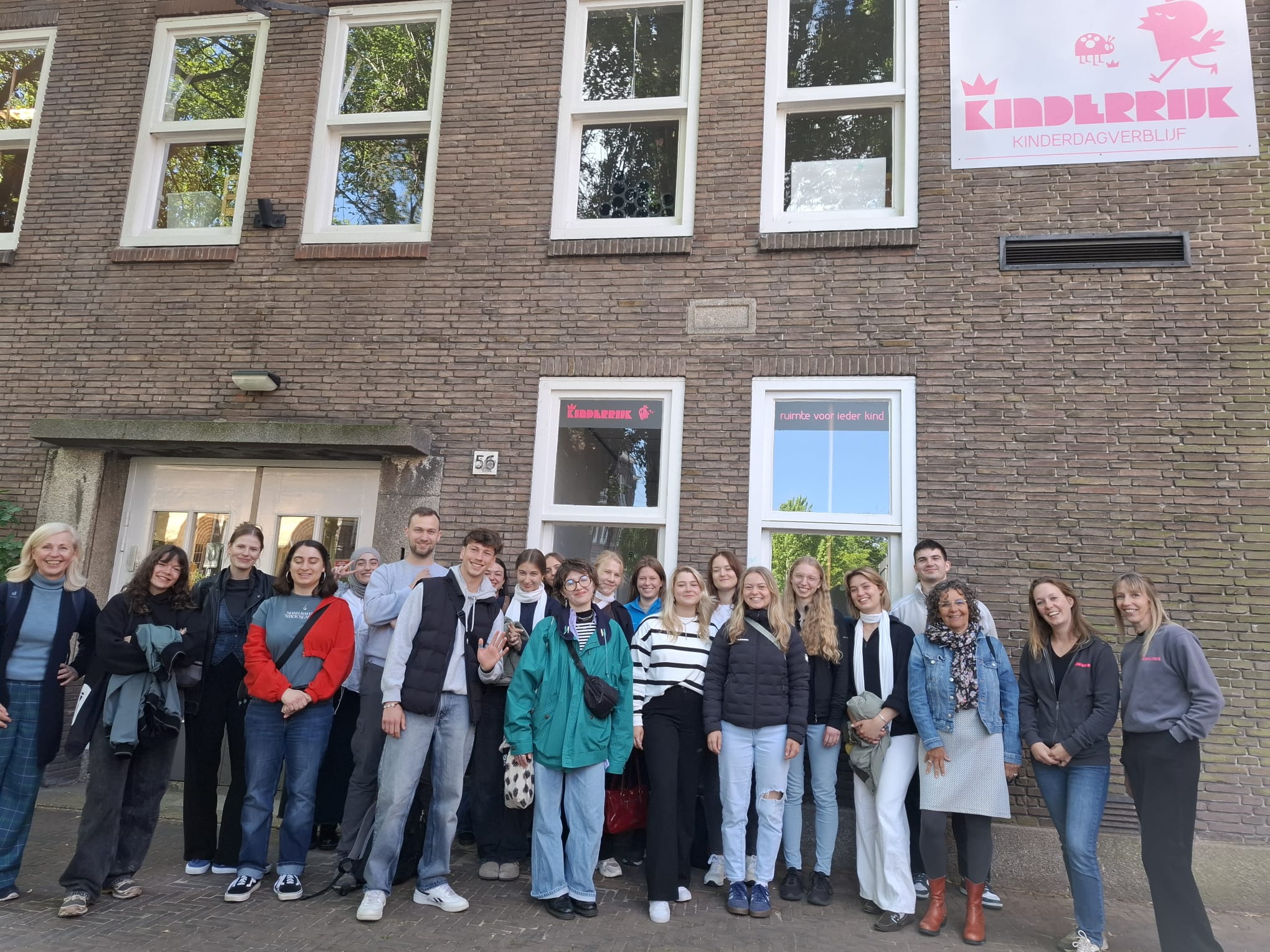 Wie sehen Kindergärten in Amsterdam aus? Welche pädagogischen Konzepte werden dort verfolgt? Und wie kann es sein, dass die Kinder dort am Tag nach ihrem 4. Geburtstag schon in die Schule kommen? Mit diesen Fragen im Gepäck machte sich eine Gruppe von Student*innen des Bachelor-Studiengangs Bildung und Erziehung in der Kindheit (BABEK) mit ihren Dozent*innen im Mai 2025 auf die Reise nach Amsterdam. Seit 2024 kooperiert der Studiengang BABEK mit Pädagog*innen und Student*innen der Hochschule Amsterdam und nach einem Besuch der Niederländer*innen im Oktober 2024 stand nun der Gegenbesuch an.