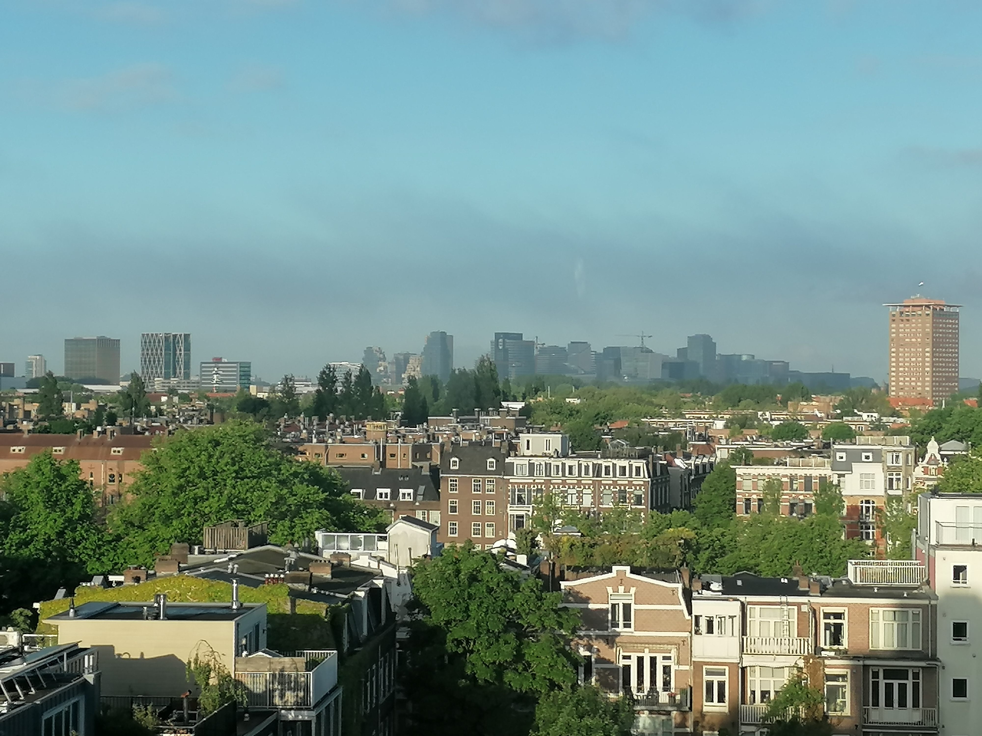Wenn einer eine Reise tut: Die Hinreise von Berlin HBF nach Amsterdam sollte laut Bahn der DB 5,5 Stunden dauern. Tatsächlich waren wir 11,5 Stunden unterwegs – aber es hat sich doch gelohnt, wie der Blick vom Volkshotel nahe der Universität von Amsterdam zeigt.