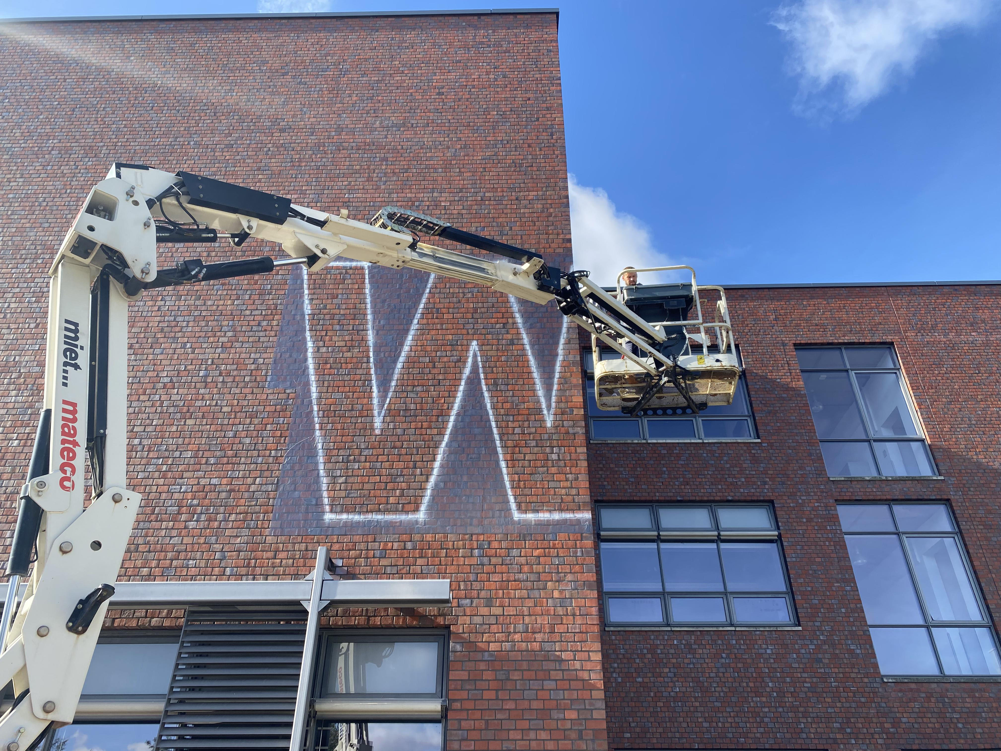 Durch große, von weitem sichtbare Fassadenbeschriftungen wird die Zugehörigkeit der verschiedenen Gebäude zur Hochschule gestärkt. Die Hauskennzeichnungen sind so platziert, dass sie innerhalb des Campus bestmöglich gesehen werden. Sie strahlen alle zur Campusmitte. Das Prinzip der historisch gewachsenen Hausbezeichnungen wurde auf Wunsch der Hochschule beibehalten. Gleichzeitig gelingt durch die Reduzierung auf einen Buchstaben eine besser nachvollziehbare Benennungslogik für Außenstehende: HG wird zu H, LW wird zu W, der zukünftige Neubau erhält die Kennzeichnung B, das Haus 17 wird ergänzt um C.