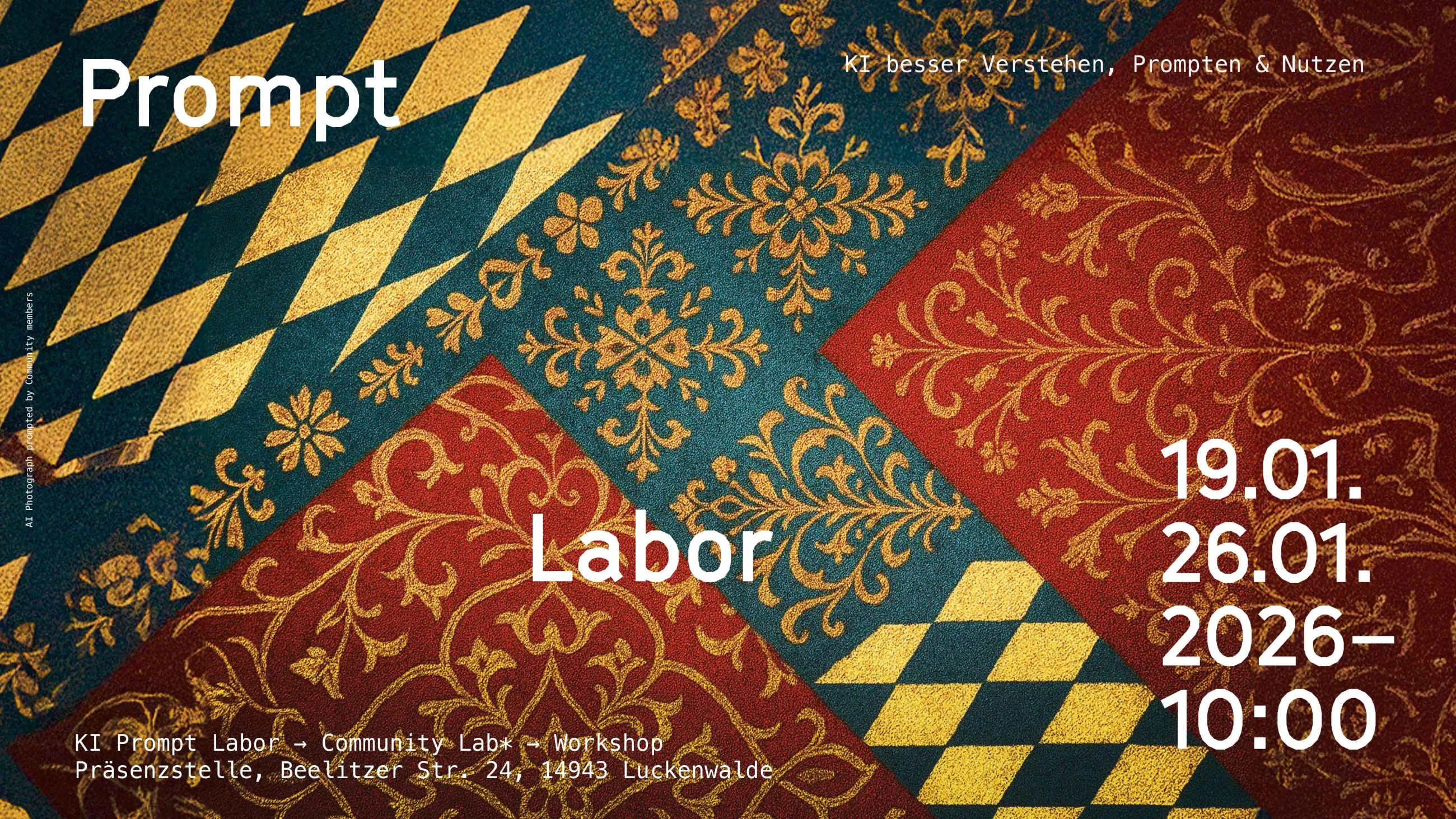 Im Rahmen des internationalen Projektes „Community-basiertes KI-Labor“ und in engem Austausch mit dem Arbeitsbereich „Digitale Lehre“ der Fachhochschule Potsdam lädt die Präsenzstelle Luckenwalde zum KI Prompt Labor ein. Der zweitägige und aufeinander aufbauende Workshop findet am 19.01.2026 und 26.01.2026 jeweils von 10:00 bis 15:00 Uhr in der Präsenzstelle Luckenwalde statt. Die Teilnahme an nur einem Tag ist gegebenenfalls auch möglich.