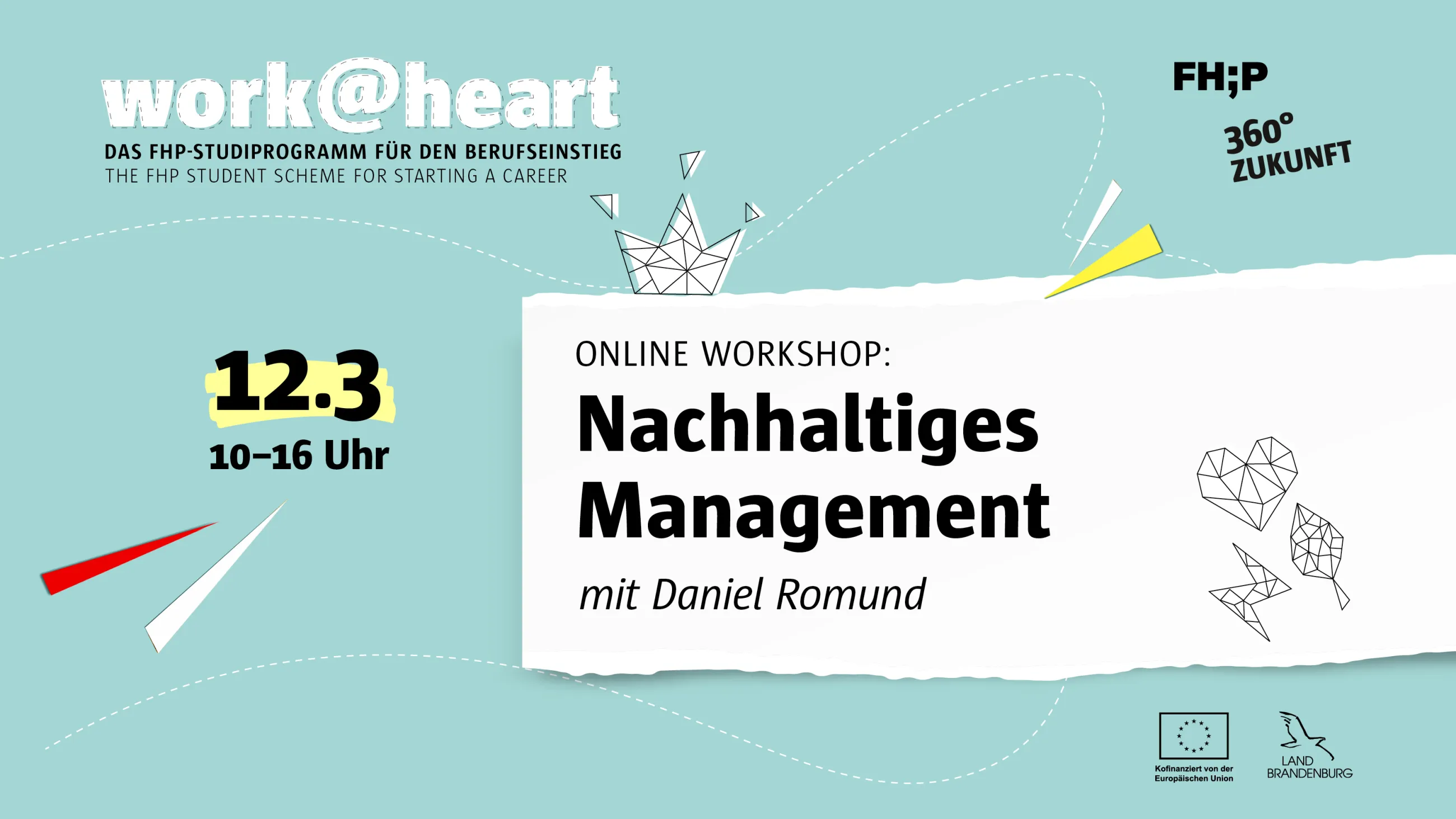 Die Veranstaltung ist ein kostenloses Angebot des Zertifikatprogramms "Perspektiven der Nachhaltigkeit" von Work@Heart und wird online via Zoom durchgeführt. Bei erfolgreicher Teilnahme erhalten die Teilnehmer*innen ein aussagekräftiges Zertifikat bzw. eine Teilnahmebestätigung.