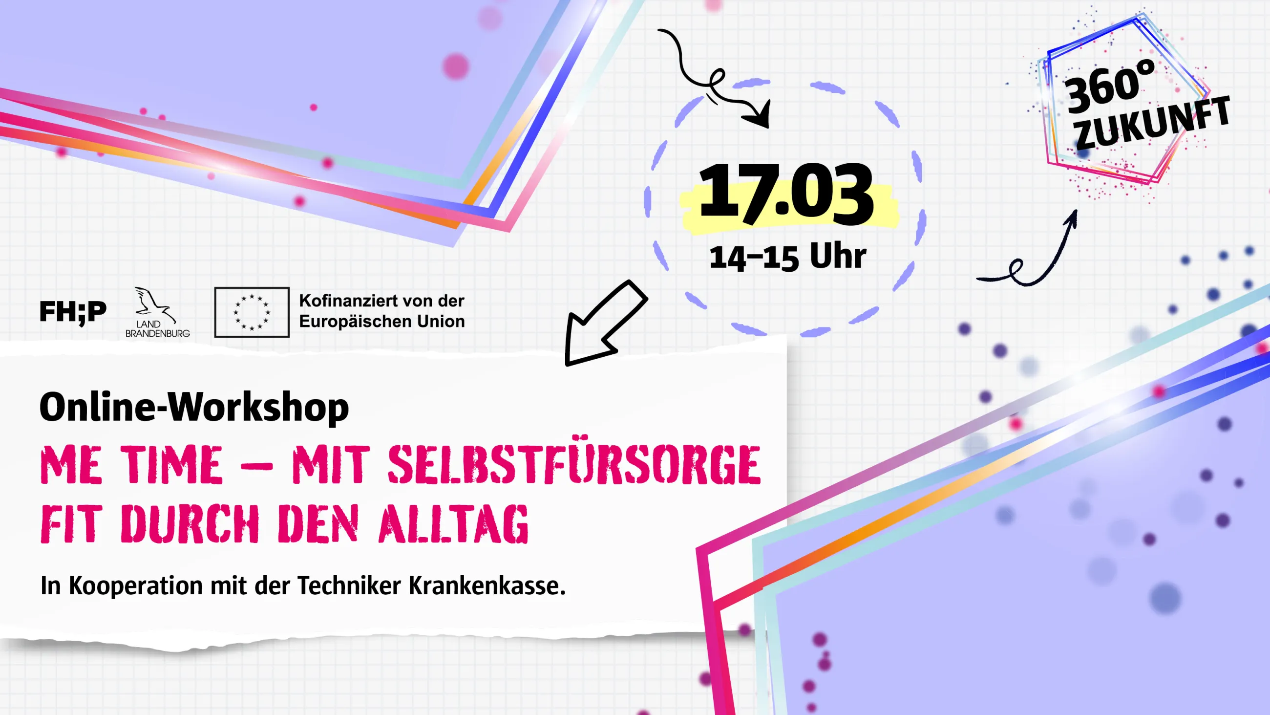 Die Veranstaltung ist ein kostenloses Angebot von 360° ZUKUNFT in Kooperation mit der Techniker Krankenkasse und wird online via MS Teams durchgeführt. Der Link wird nach erfolgreicher Anmeldung verschickt. Anmeldung über Calenso.