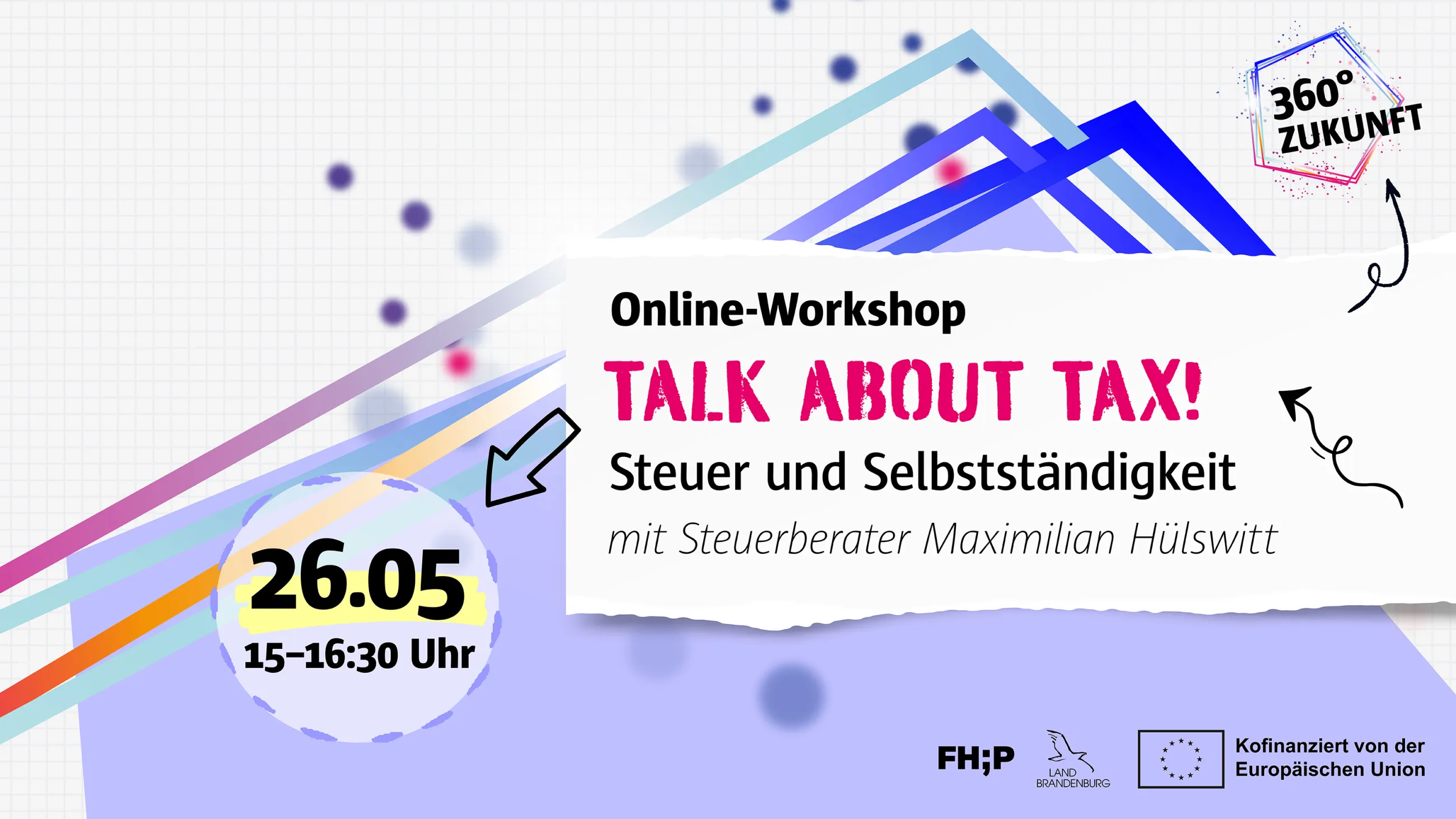 Keine Angst vor der Steuer! Steuerberater Maximilian Hülswitt führt die Teilnehmer*innen mit praxisnahen Beispielen an steuerrechtliche Inhalte heran und stellt sich 1,5 Stunden allen wichtigen Fragen zum Thema Steuern und Selbstständigkeit. Denn was Viele nicht wissen: das Thema Steuer sollte in der Prioritätenliste bei einer Unternehmensgründung ganz oben stehen.