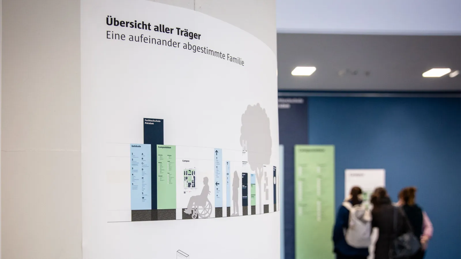 The University of Applied Sciences Potsdam is a diverse and colourful place. North of Potsdam's city centre, the campus is home to over 3,700 students, more than 400 employees, the neighbourhood and countless visitors. A new orientation system aims to make the university more visible in the cityscape and improve orientation on campus for everyone. A particular focus is on visualising the diverse campus life.