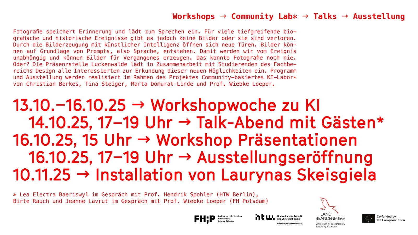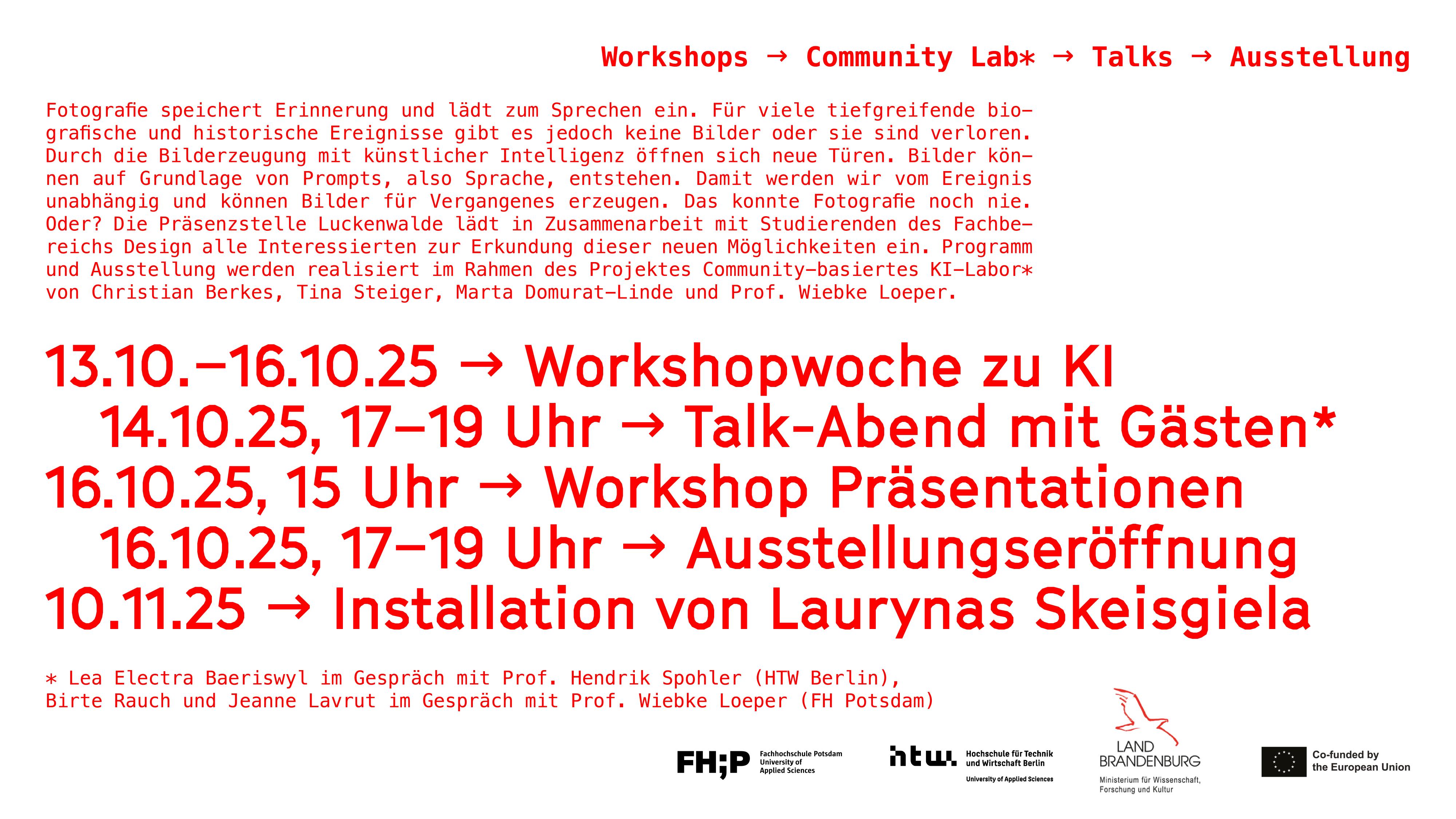 The programme and exhibition are being realised as part of the Community-based AI Lab* project by Christian Berkes, Tina Steiger, Marta Domurat-Linde and Prof. Wiebke Loeper.