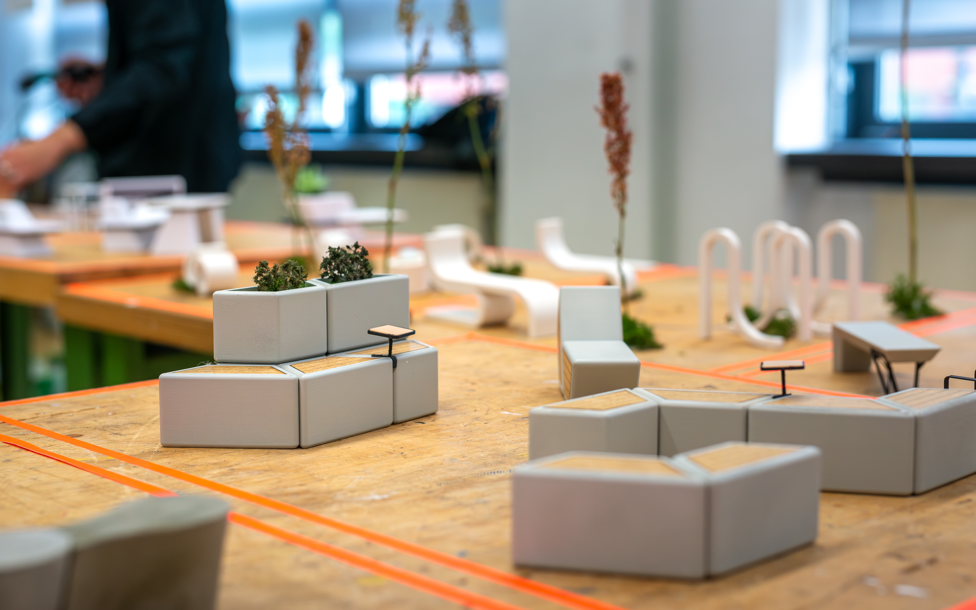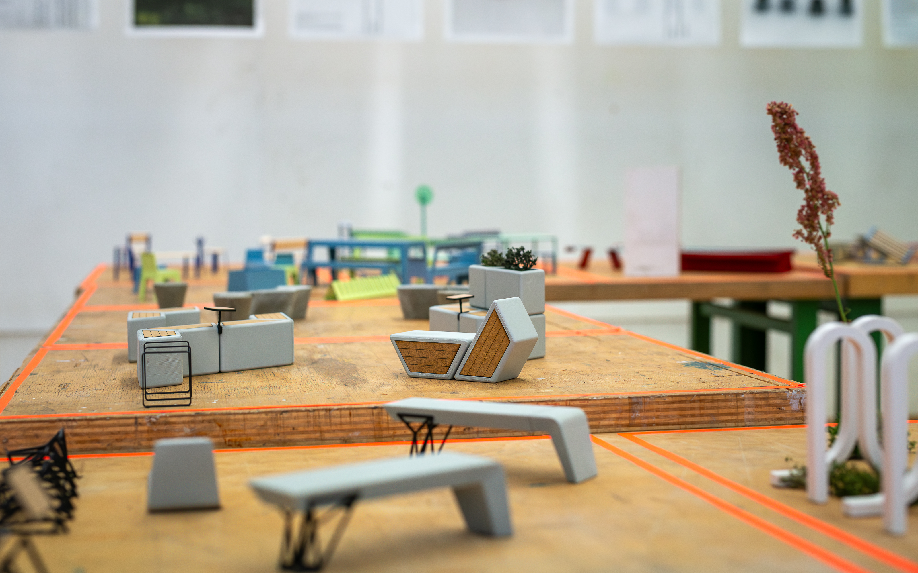 In this design seminar, smart and modular concepts were developed for the street furniture of tomorrow. The challenge was to design entire product families from easy-to-manufacture modules based on semi-finished products - from park benches and tables to bicycle racks and guidance systems. Sustainability was at the centre of this: we were looking for intelligent solutions for material selection, production and maintenance that make repairs and the replacement of components uncomplicated.