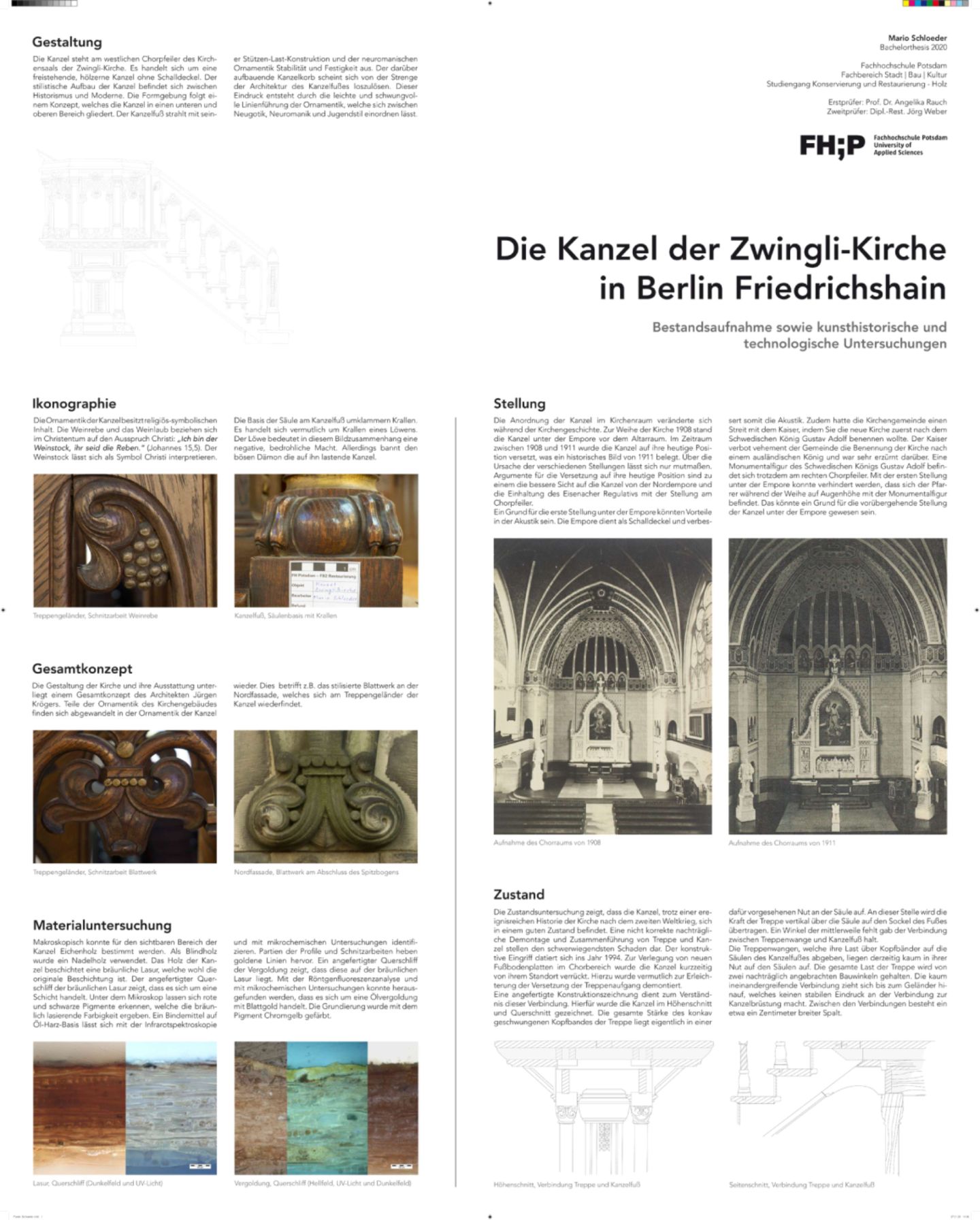 - No. 364364 - Praktikumsordnung für den Bachelorstudiengang Konservierung und Restaurierung an der Fachhochschule Potsdam (PDF, 94.34 KB)Für Praktika, die ab 24.07.2025 beginnen, gilt ABK Nr. 363b2 vom 23.07.2025.Contact: CITY | BUILDING | CULTURE Department