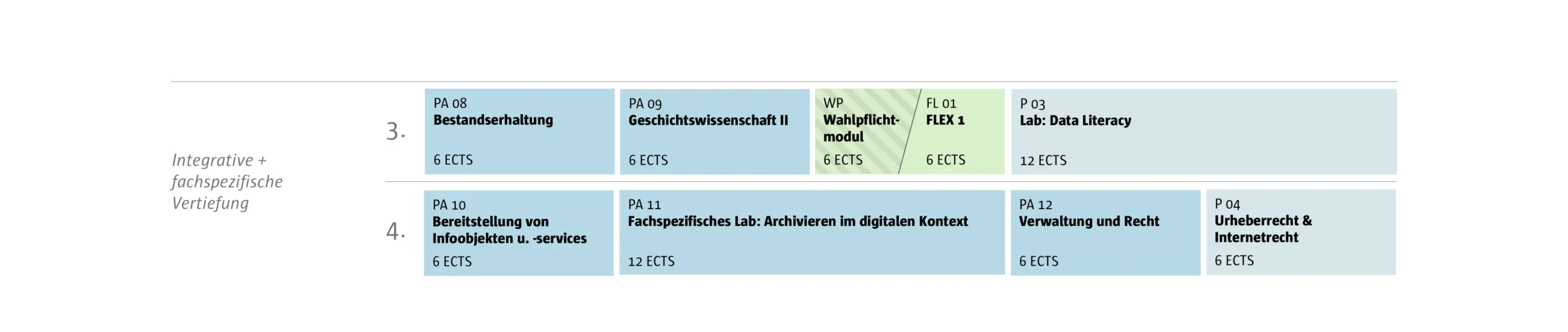 Bereits in dieser frühen Phase absolvieren Sie ein erstes sechswöchiges Praktikum – z. B. in einer wissenschaftlichen Bibliothek. So können Sie Gelerntes direkt anwenden, unterschiedliche Arbeitsbereiche erkunden und eigene Interessen schärfen.