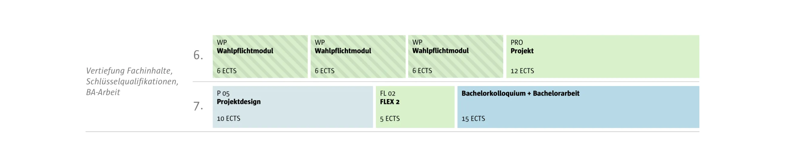 - zwei Projekte (4. Semester und 6. – 7. Semester)